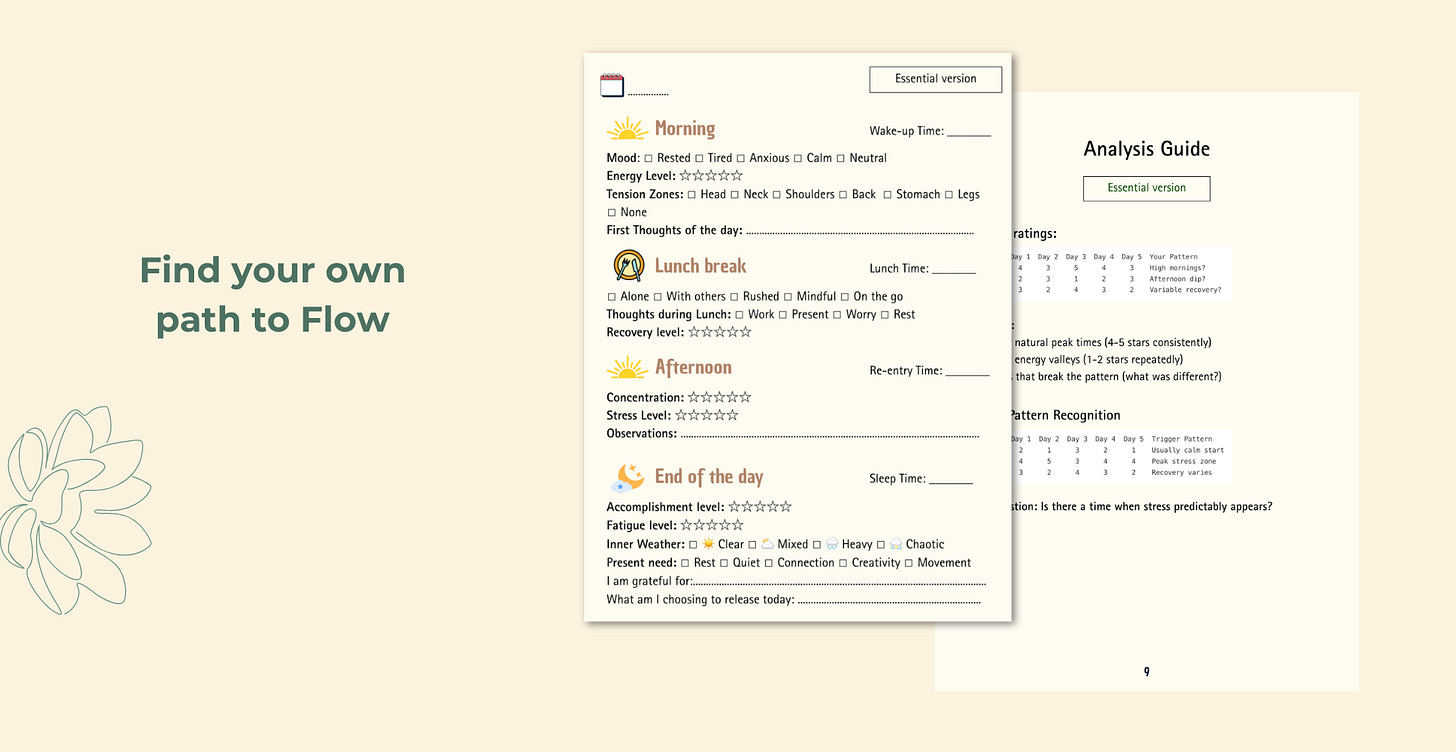 What truly supports you — a short walk, a moment of silence, a mindful breath before the next task.